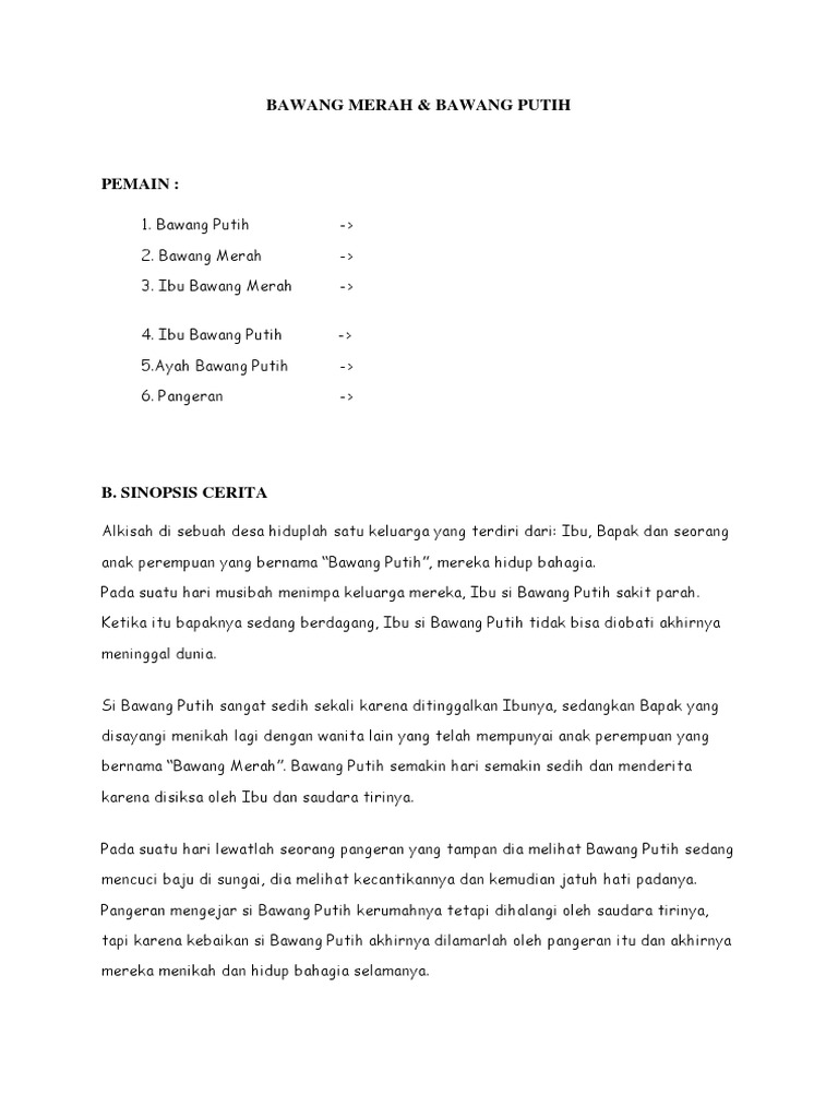 Doc Sinopsis Drama Bawang Merah Bawang Putih Yulha Nanta Academia Edu