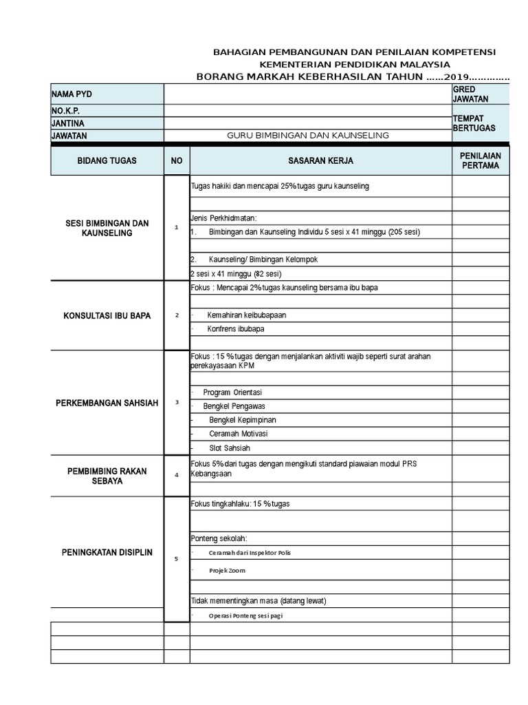 Borang Keberhasilan 2019 Contoh Kaunseling Pdf