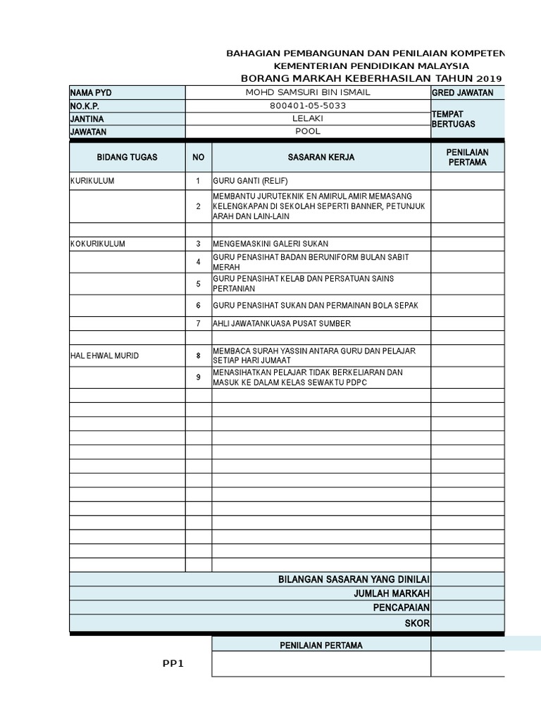 Contoh Borang Markag Keberhasilan Guru Matapelajaran Borangnegeri