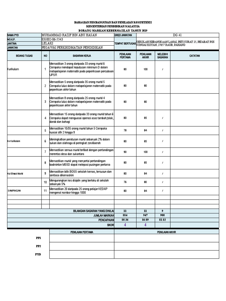borang markah keberhasilan tahun 2019