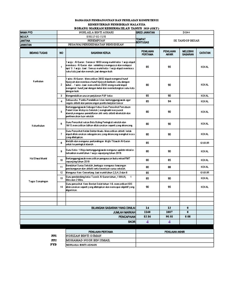 Borang Keberhasilan 2019 Okt Laila Pdf